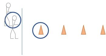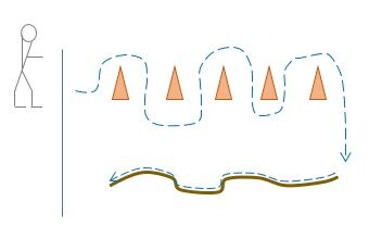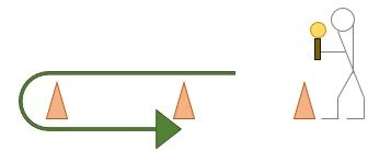 Die TN stehen hintereinander an der Startlinie. Nacheinander müssen sie den Parkour, bestehend aus einem Slalom durch Hütchen und Balancieren auf einem Tau, absolvieren. Der TN klatscht den nächsten TN ab, dann darf dieser starten.