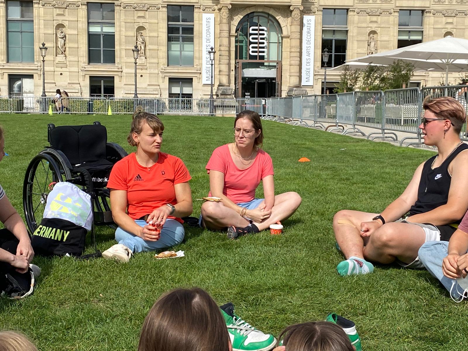 Ein Höhepunkt der Paris-Visite war der Besuch des Deutschen Hauses, wo die Jugendlichen hautnah in Kontakt mit den Para-Sportlerinnen und Sportlern kamen. So gab es beispielsweise ein Stelldichein mit Kugelstoßer Niko Kappel, der seine Silbermedaille im Gepäck hatte und jedem, der es wollte, die Gelegenheit gab, das kostbare Stück anzufassen. Beeindruckend und informativ war zudem die Begegnung mit Theresa Schopper, der baden-württembergischen Ministerin für Kultus, Jugend und Sport, die sich in kleiner Runde fast eine Stunde lang den Fragen der BBS-Delegation stellte.