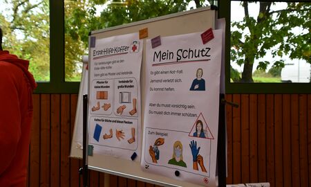Der Erste-Hilfe-Kurs wurde nach der erprobten Methode „Lernen durch Erleben“ durchgeführt. Um den besonderen Bedürfnissen der Teilnehmenden gerecht zu werden, fand der Unterricht in Leichter Sprache statt, wobei großer Wert auf die enge Verzahnung von Theorie und Praxis gelegt wurde.