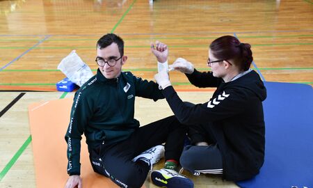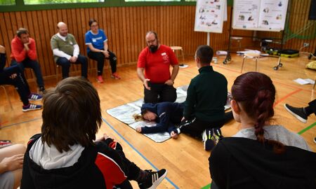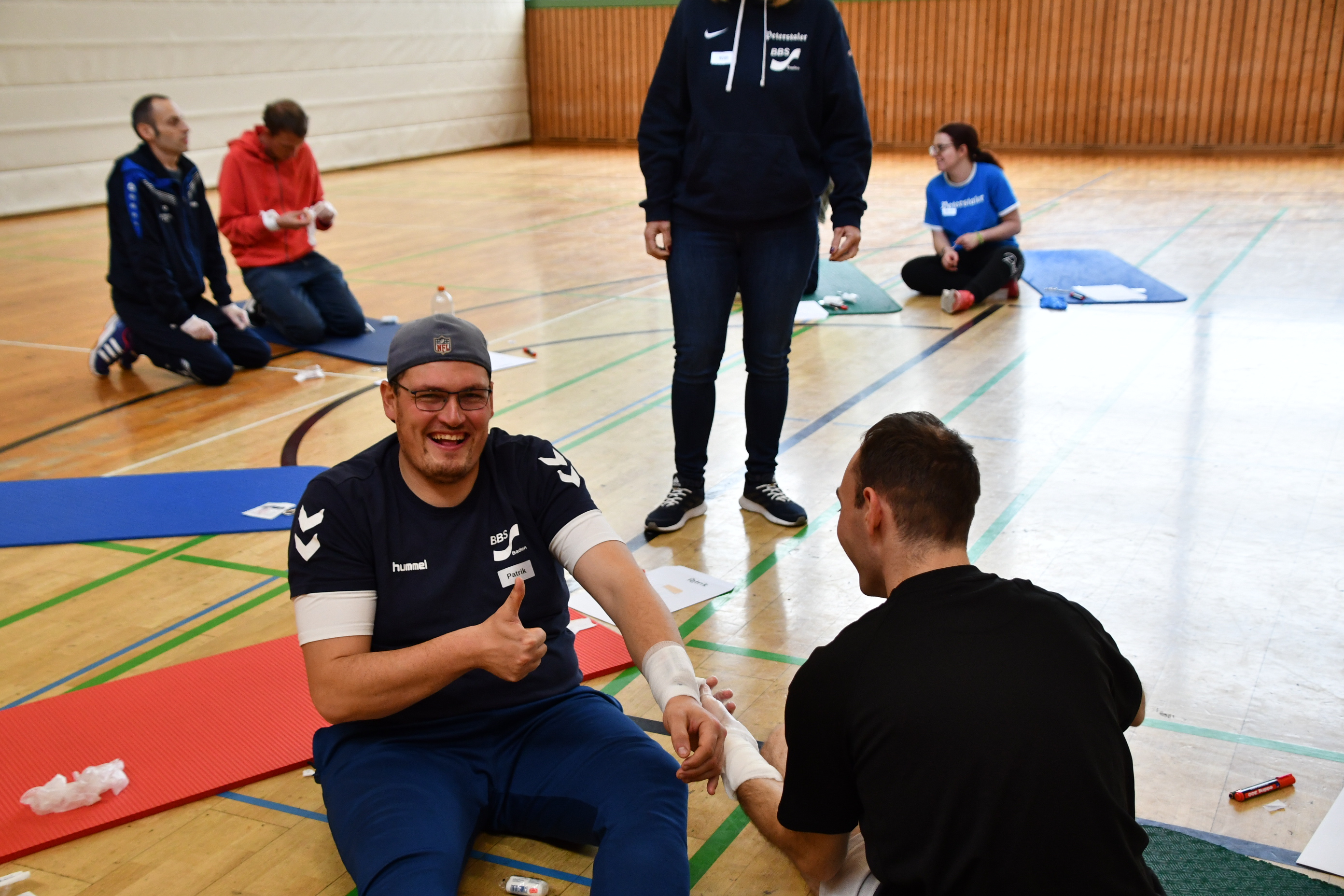 Bereits zum zweiten Mal organisierte der Badische Behinderten- und Rehabilitationssportverband (BBS) am Montag eine Erste-Hilfe-Schulung für Menschen mit geistiger Behinderung. Der Kurs fand an der barrierefreien Sportschule Baden-Baden Steinbach statt. „Jeder Mensch kann Erste Hilfe leisten“, betont Sport-Inklusionsmanagerin Kim Früh. „Mit diesem Kurs möchten wir die Zielgruppe auf den Umgang mit Notfällen im Sport vorbereiten.“
