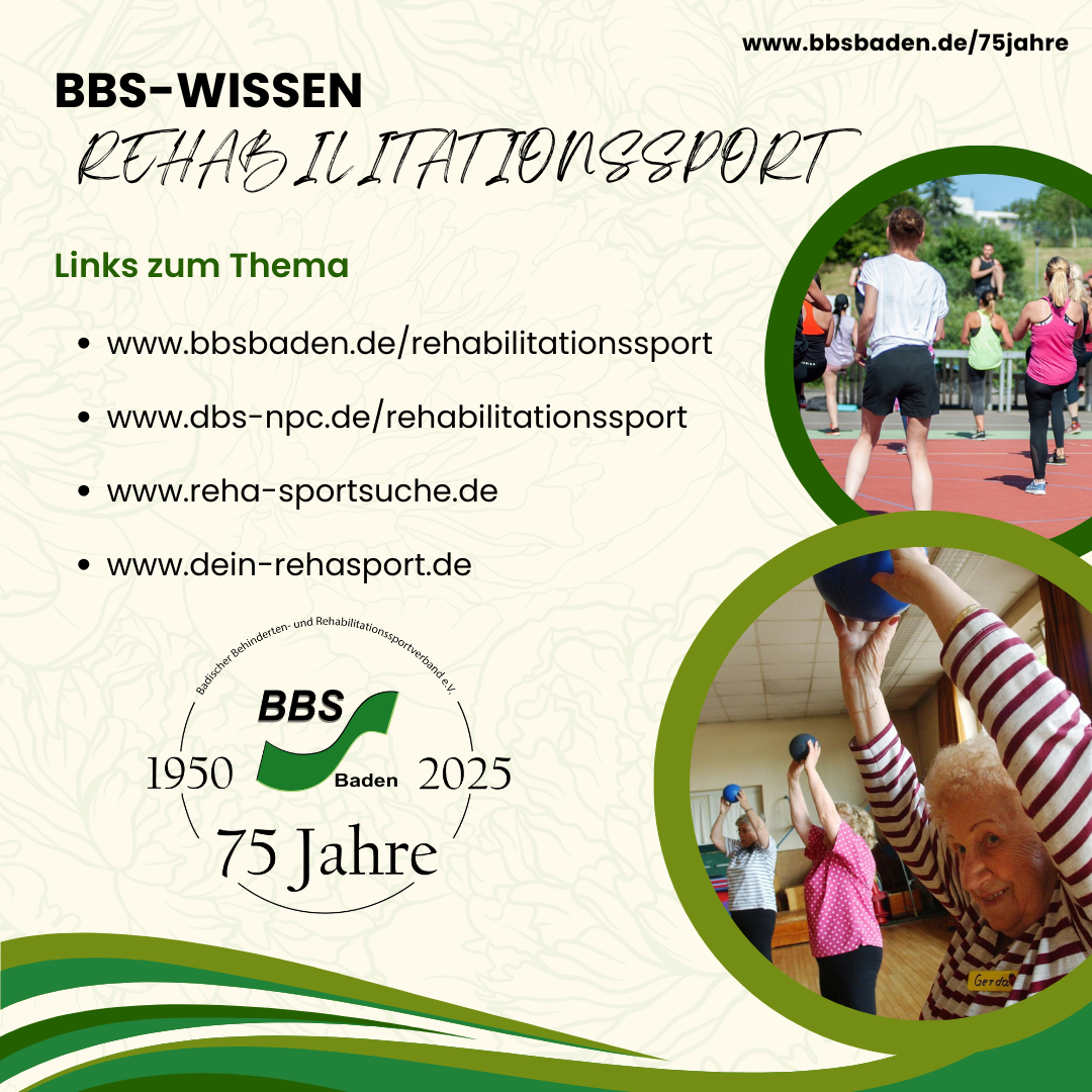 Rehabilitationssport kommt für behinderte und von Behinderung bedrohte Menschen in Betracht, um sie unter Beachtung der spezifischen Aufgaben des jeweiligen Rehabilitationsträgers möglichst auf Dauer in die Gesellschaft und das Arbeitsleben einzugliedern.