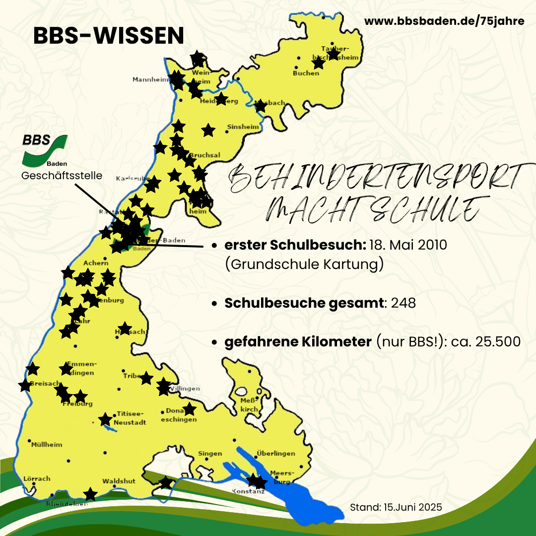 - Behindertensport macht Schule kann nach Vereinbarung in insgesamt drei Doppelstunden in zuvor ausgewählten Klassenstufen wiederholt werden.